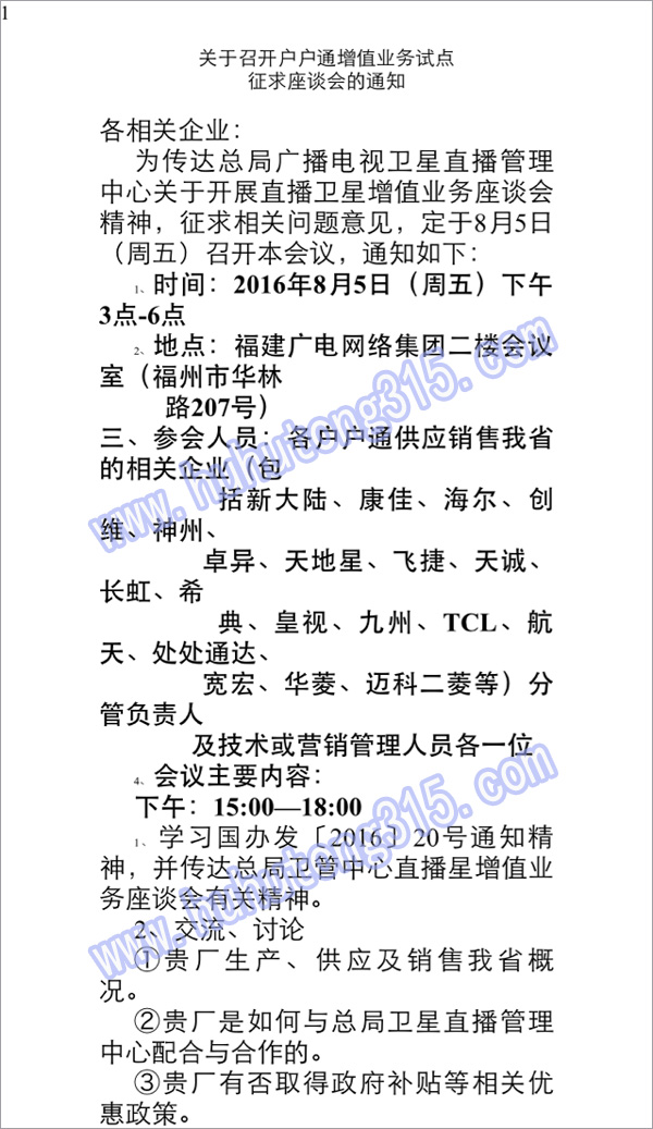 福建广电网络集团关于召开户户通增值业务试点征求座谈会 |